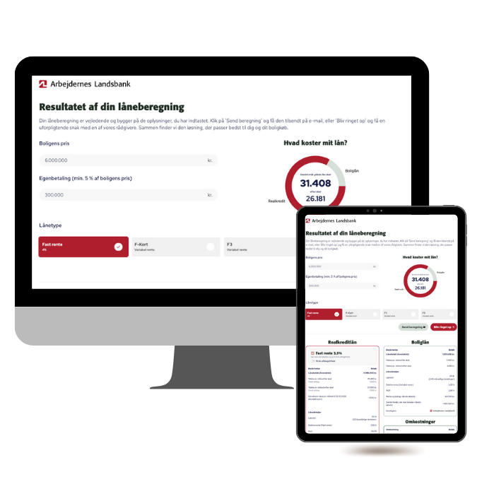 En beregner giver kunden et første svar på deres egen økonomi – bolig, lån eller budget – direkte på bankens website.